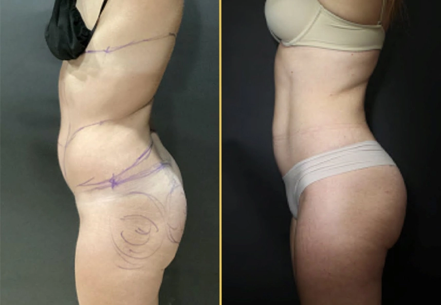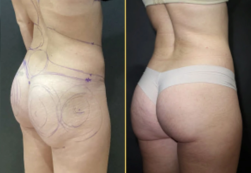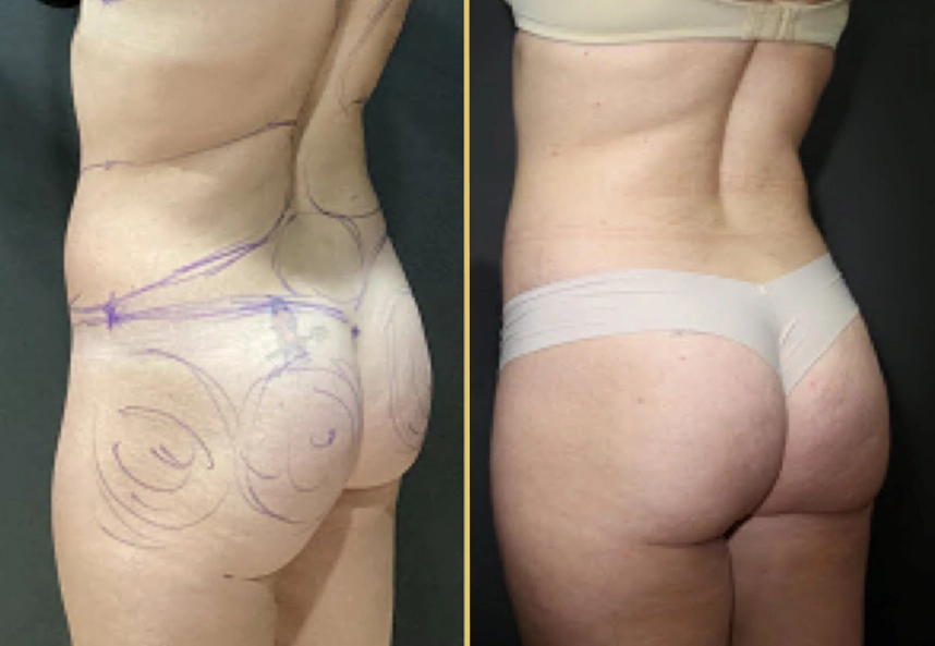 • Note: This patient wanted liposuction of the abs, waist & chin with a skinny BBL transferring the fat to her hip dips and buttocks.