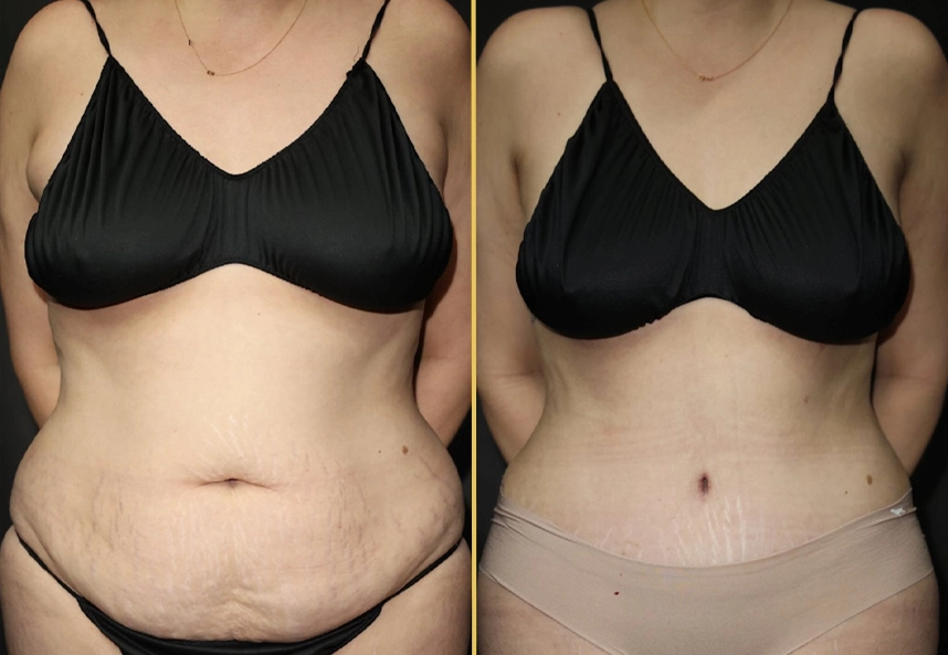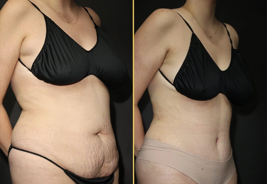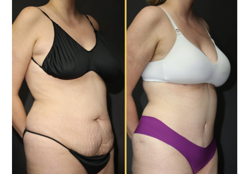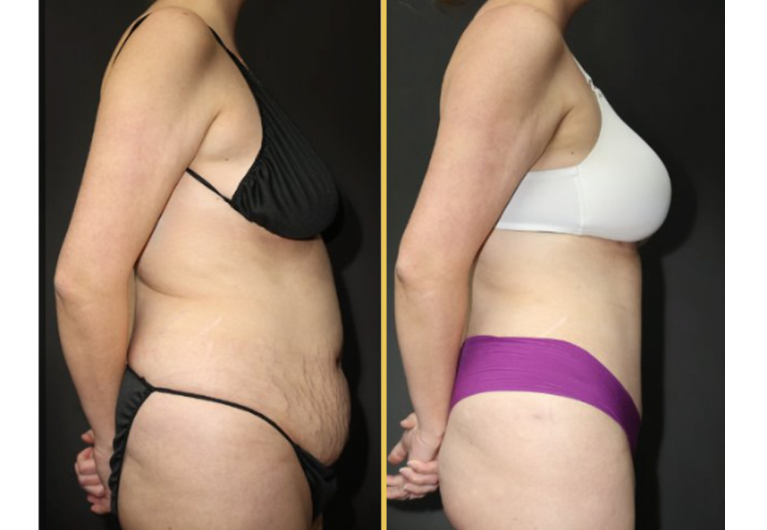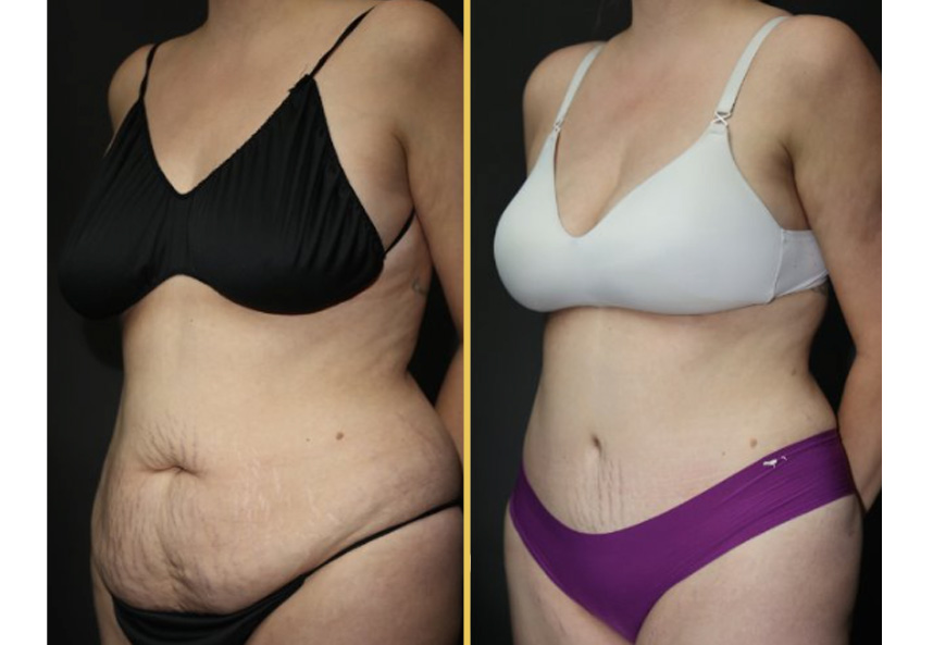 • Note: After researching Tummy Tucks and discovering our 5-star ratings, this 36-year-old mother came to us. We achieved her amazing results by performing liposuction to the upper abdominal midline, waist, front & back bra rolls, upper & lower back in conjunction with a Tummy Tuck to remove the excess skin. We love how natural the belly button is with hidden incisions and how the Ab Silhouetch℠ combined with the Tummy Tuck gave her improved soft, sculpted contours of toned athleticism.