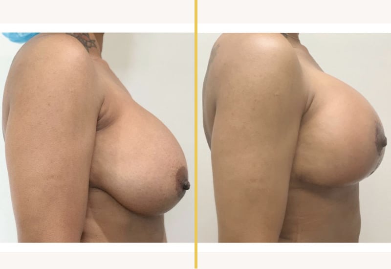 • Goals: had a previous breast augmentation 15 years ago, developed left capsular contracture, wears 36DD bra and wanted to stay the same size or go up slightly in size with a breast lift