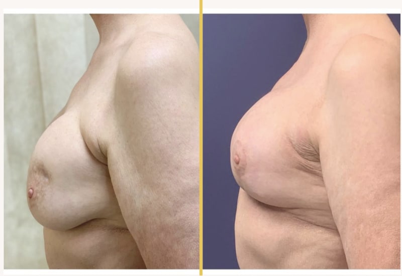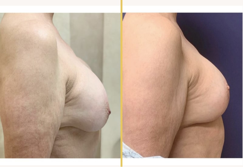 • Goals: after previous breast implantation 37 years ago, breast cancer with radiation therapy and lumpectomy on the left side, she wanted a breast lift and reaugmentation
