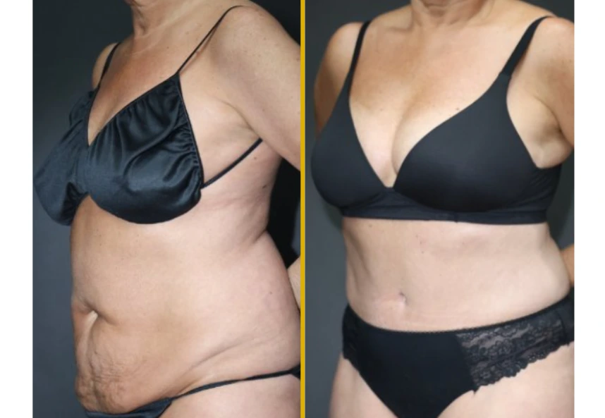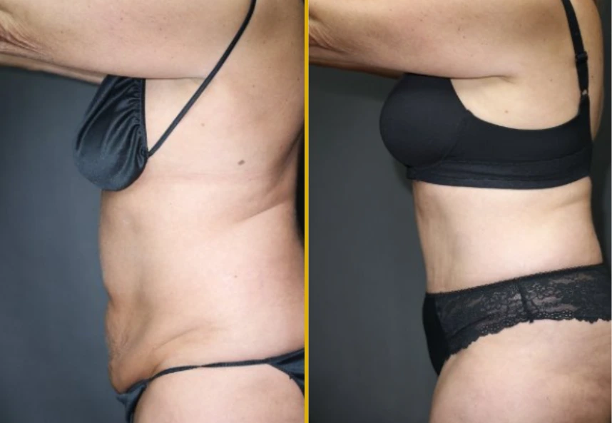 • Areas treated by liposuction: anterior waist and hips